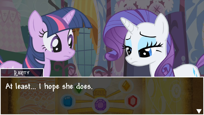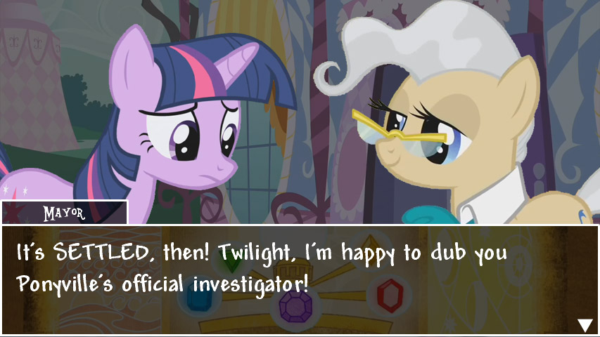 As another example, within locations, there’s a check to see whether there’s an encounter ongoing; if so, the location just updates and draws that encounter, whereas otherwise it accepts keyboard input to move the player character (Twilight) around the scene. We want to make it so that the player can click on one of those and have Twilight either comment on the foreground element or start a conversation with a character. In order to accomplish this, given this design, all we need to do is load the encounter associated with the foreground element or the character, and the location will then just automatically do the right thing since encounters are also self-contained objects that run themselves. If we didn’t do this, then we’d have to specifically worry about all the details every time, which is not something you want to do in a software project – that very quickly becomes unmaintainable.